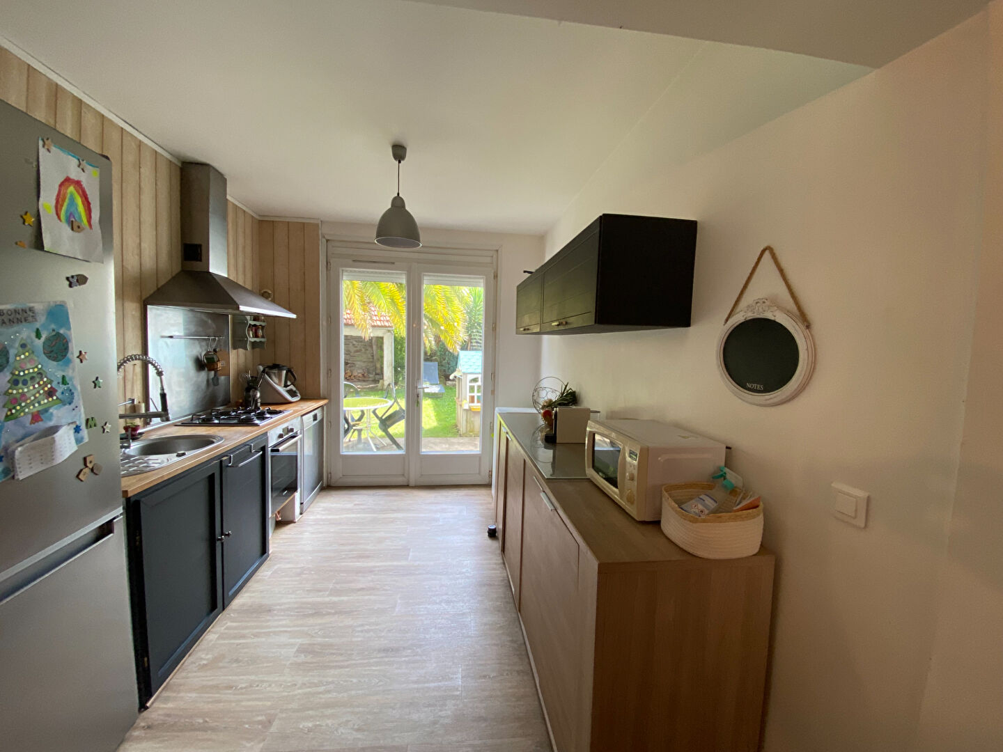 Au rez-de-chaussée : une entrée, un salon-séjour spacieux avec une cheminée, une cuisine ouverte aménagée et équipée avec accès direct au jardin, une salle de bains avec WC