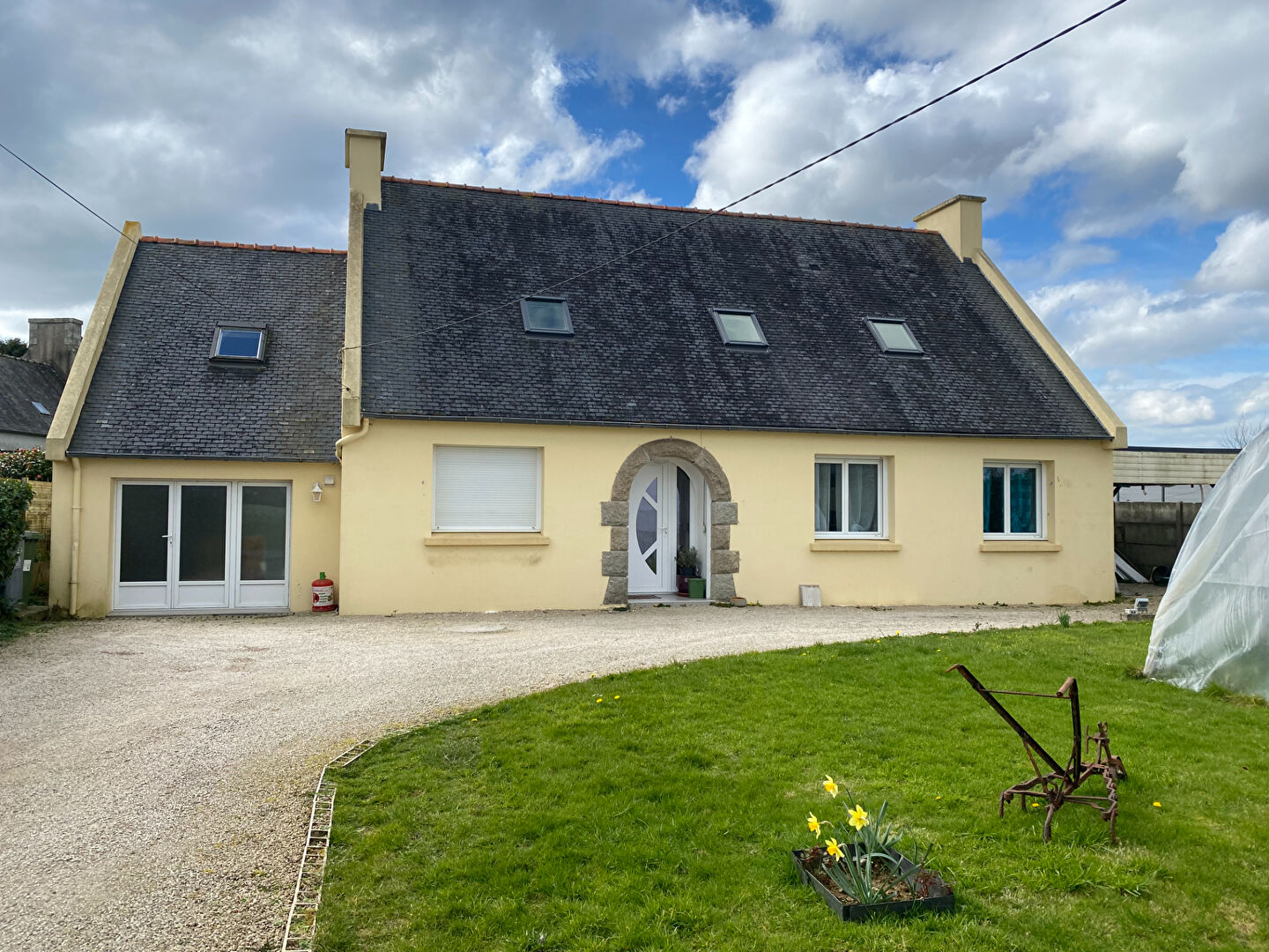 Nous vous proposons à l’achat en exclusivité, cette jolie maison plain-pied de 95 m² située à GUICLAN et proche de LANDIVISIAU. La maison est composée de : – Au rez-de-chaussée : une entrée, un salon-séjour lumineux orienté plein sud sur une cuisine ouverte aménagée et équipée avec de nombreux rangements, trois chambres, un dressing, un WC , une salle de bains (baignoire et douche). Sur ce même niveau, on retrouve une buanderie avec de nombreux rangements. – A l’étage, les combles proposent une surface supplémentaire d’au moins 80 m² qu’il restera a aménager si on le souhaite. Le tout sur une parcelle de 1000 m² . Le jardin est entièrement clos et dispose d’un carport. Cette maison propose un très beau potentiel, elle nécessite encore quelques travaux pour être entièrement rénovée. dont 6.50 % honoraires TTC à la charge de l’acquéreur.