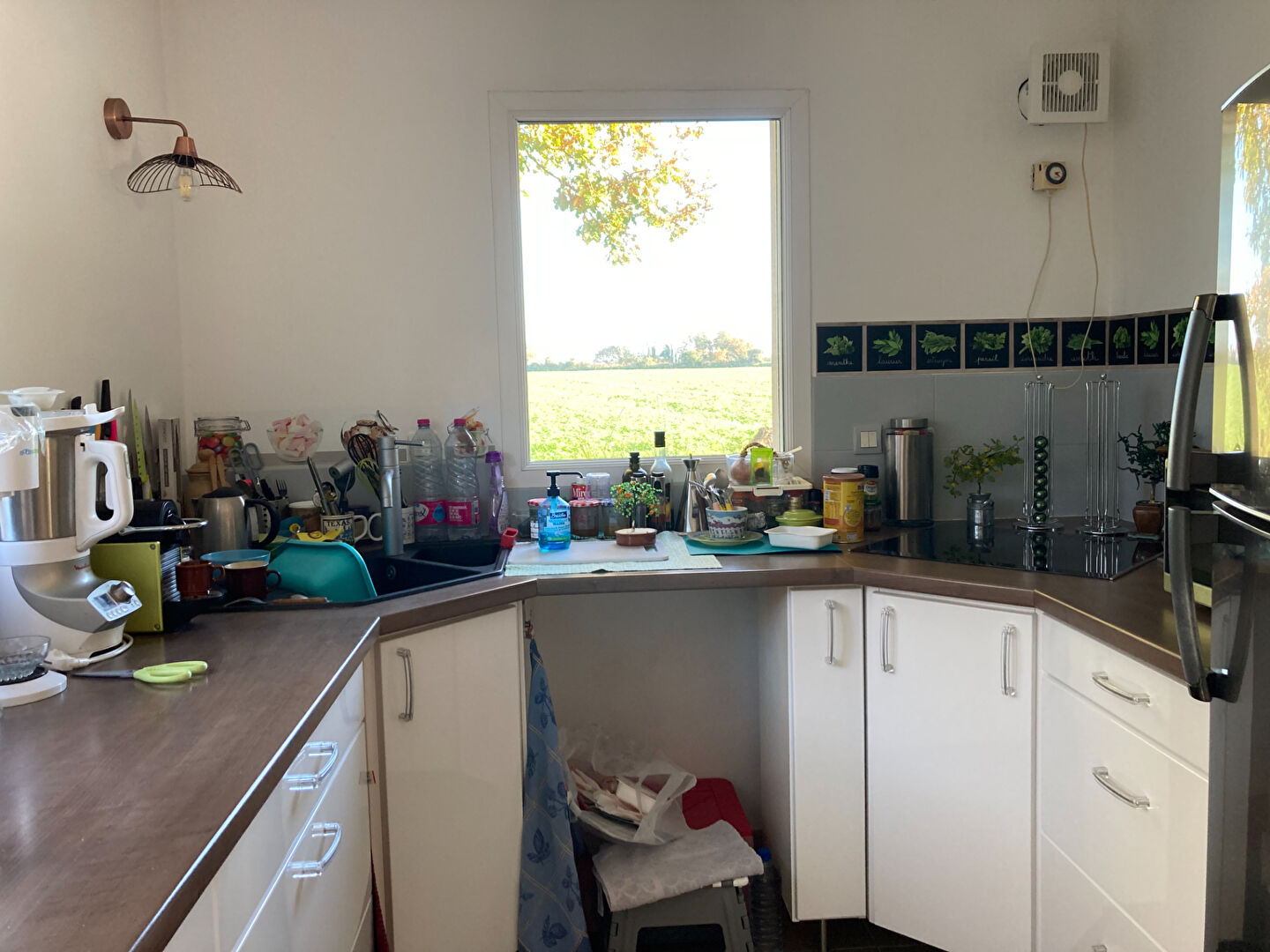 Au rez-de-chaussée: Une entrée avec placards, salon-séjour spacieux et très lumineux, une cuisine indépendante aménagée, une salle d’eau avec WC.