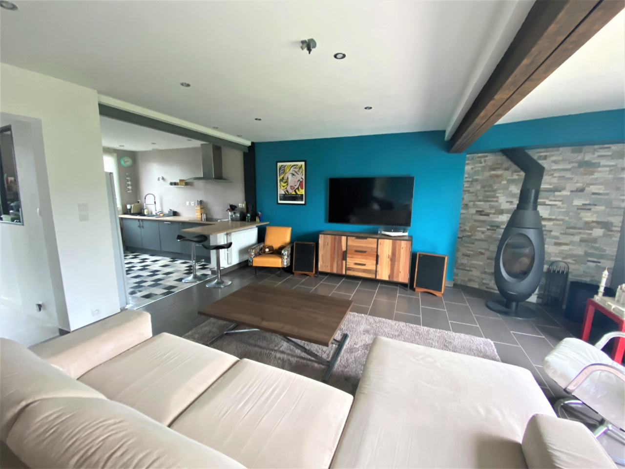 Nous vous proposons à l’achat en exclusivité, une maison T7 située en plein coeur du Bourg de Ploudaniel. Entièrement rénovée, elle propose de très beaux volumes et conviendra parfaitement à une famille souhaitant poser ses meubles. Cette maison de 172 m² est composée de la façon suivante : – Au rez-de-chaussée : une entrée, un salon-séjour spacieux et lumineux, une salle-à-manger, une cuisine ouverte aménagée et équipée, un WC, un garage avec coin buanderie – Au 1er étage : 4 chambres, une mezzanine, 2 salles d’eau et un WC. Les combles sont aménageables. Le salon et la salle-à-manger proposent un accès direct à la terrasse carrelée orientée sud-ouest. Le tout sur une parcelle de 594 m² avec très peu de vis-à-vis. Les baies vitrées, la porte d’entrée, la porte du garage sont neuves tout comme la pompe à chaleur. A visiter rapidement. dont 6.00 % honoraires TTC à la charge de l’acquéreur.