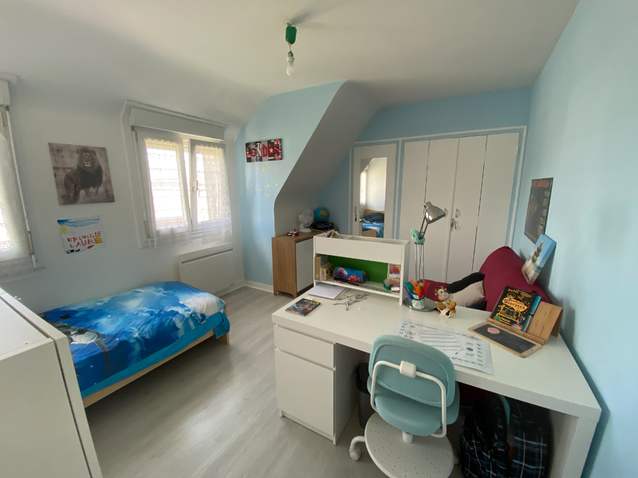 Nous vous proposons à l’achat une maison de 95 m² idéalement située proche de toutes les commodités (tram, commerces). est composée de : – Au rez-de-chaussée : une entrée, une cuisine indépendante aménagée semi-équipée, un séjour salon lumineux avec accès direct sur la terrasse et le jardin, un cellier, WC – À l’étage : 3 chambres et une salle de bains avec WC. Cette T5 possède également un garage avec mezzanine pour de nombreux rangements. Le tout sur un terrain de 514m² sans vis-à-vis, entièrement clos et paysagé. Place de parking pour 2 voir 3 voitures sur l’avant Chauffage électrique à inertie, fenêtres PVC double vitrage de 2007. Toiture exposée ouest refaite en 2011. Après quelques travaux de remise au goût du jour, vous n’aurez qu’à poser vos valises. dont 4.50 % honoraires TTC à la charge de l’acquéreur.