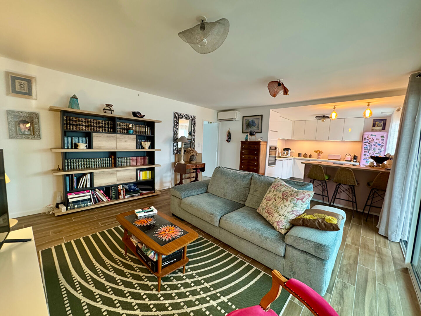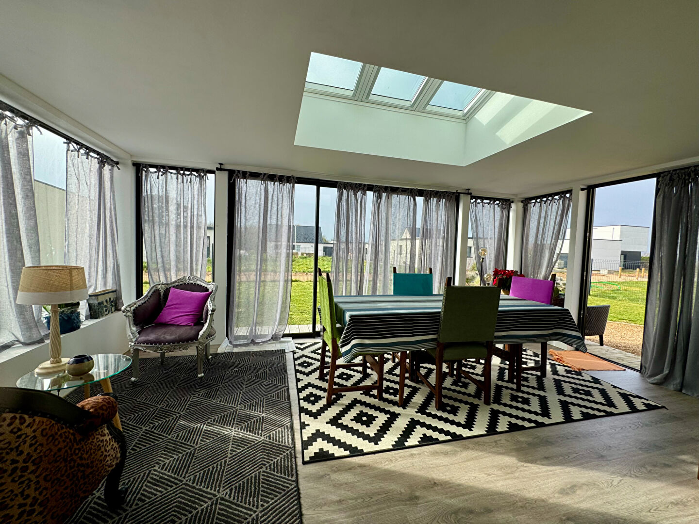 Les grandes baies vitrées associées aux puits de lumière la rende particulièrement lumineuse.